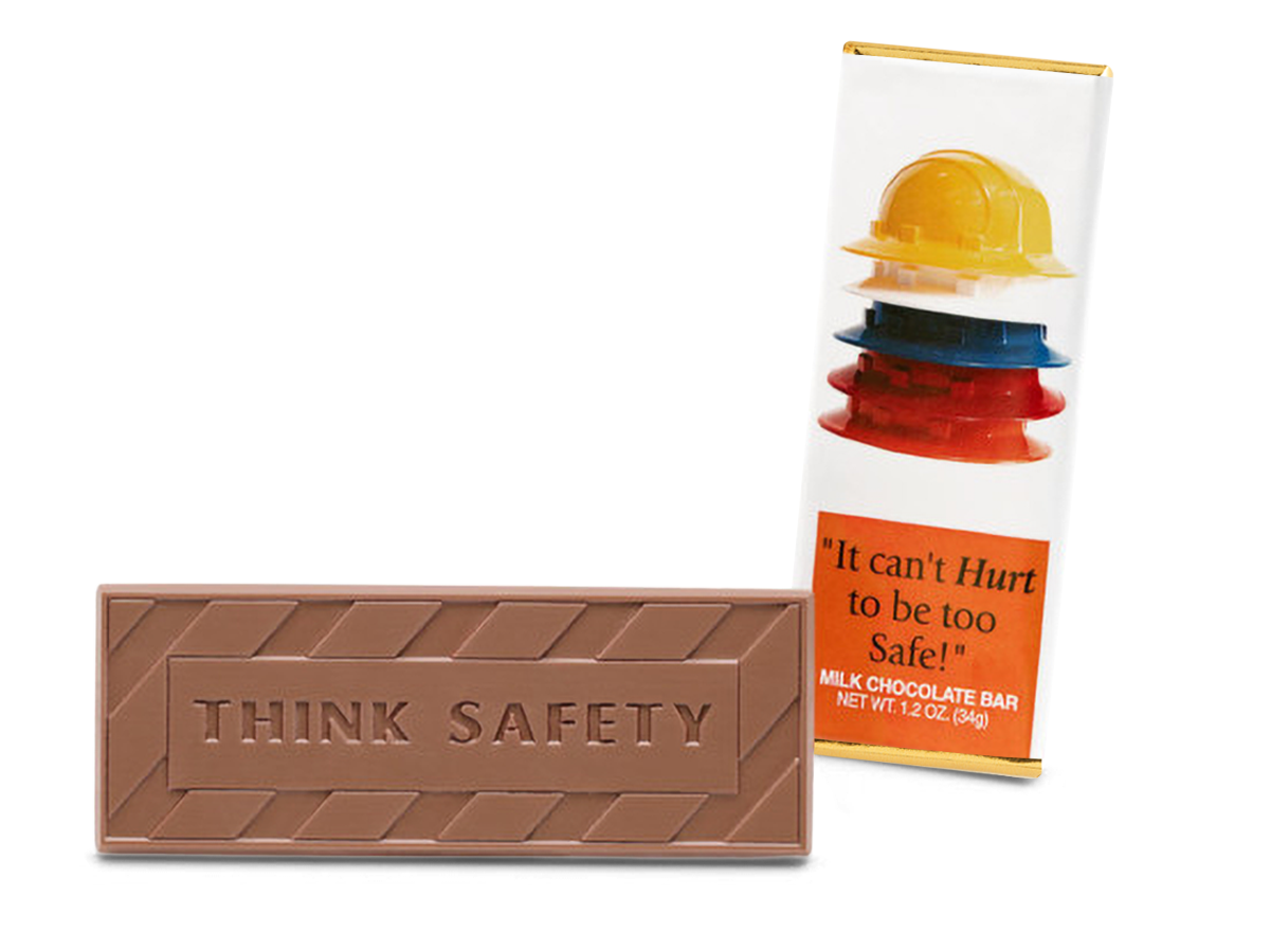 Promote safety with a sweet touch! This wrapper bar features creamy, premium milk chocolate engraved with “Think Safety” and wrapped in a bright, motivational design. Perfect for safety programs, employee recognition, or workplace events. A delicious reminder that staying safe is always the smartest (and sweetest) choice.