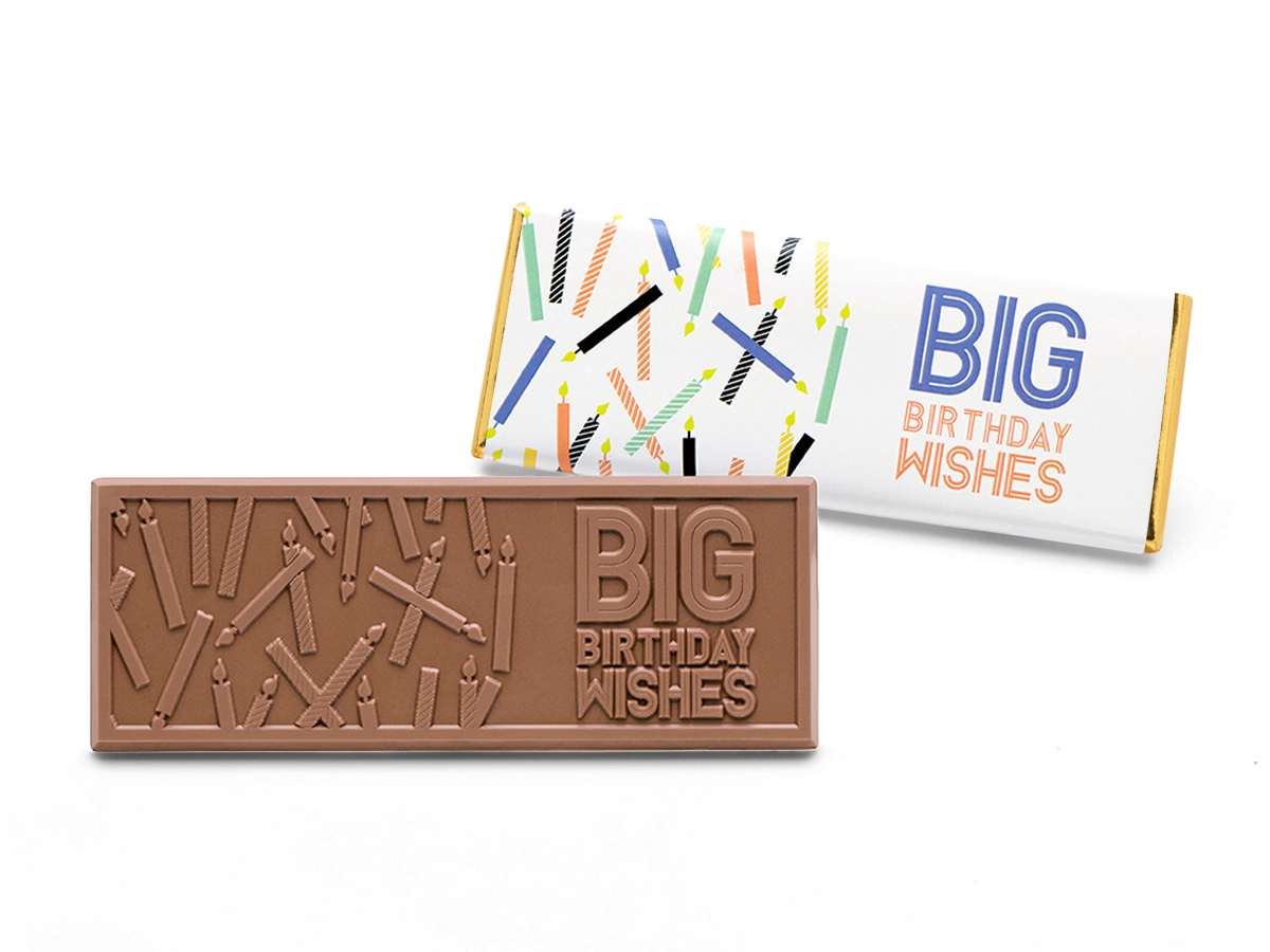 Celebrate birthdays with our “Happy Birthday” chocolate wrapper bar. Engraved with “BIG Birthday Wishes” and wrapped in vibrant, festive packaging, this premium milk chocolate bar is perfect for gifting, parties, or employee milestones. Delivering sweet celebration in every bite.