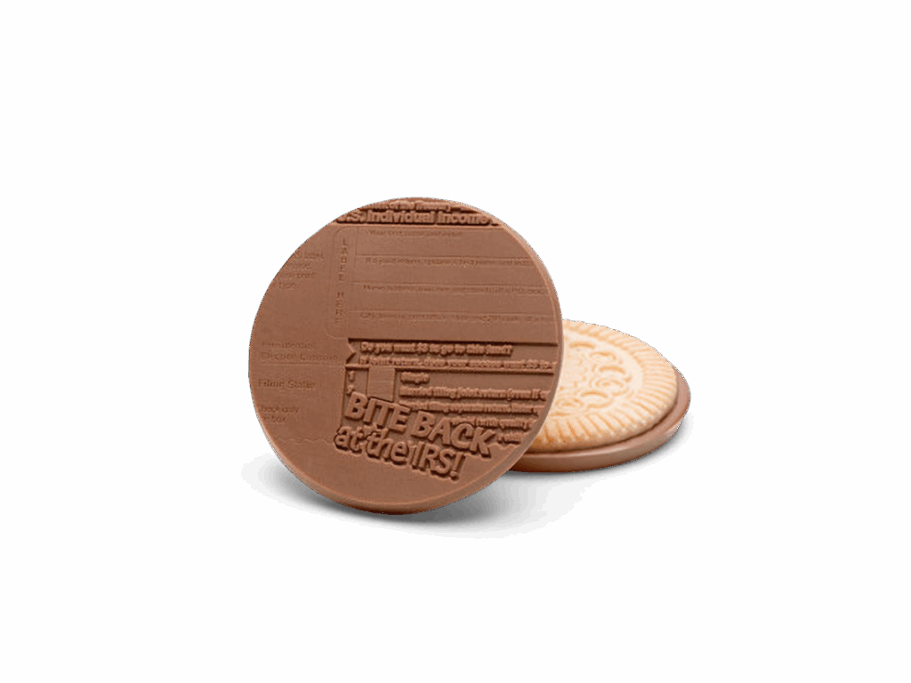 3.2″ Large Milk Chocolate Sugar Cookie – Bite Back IRS – Case of 50