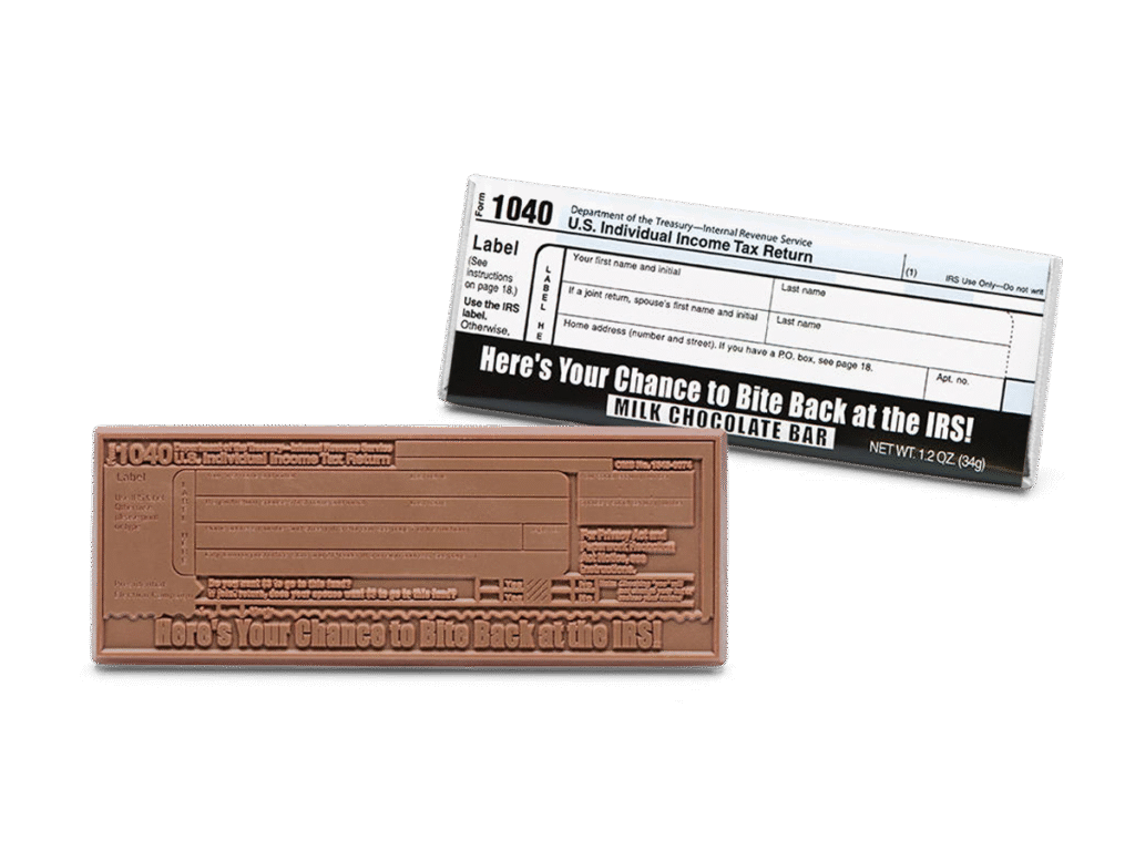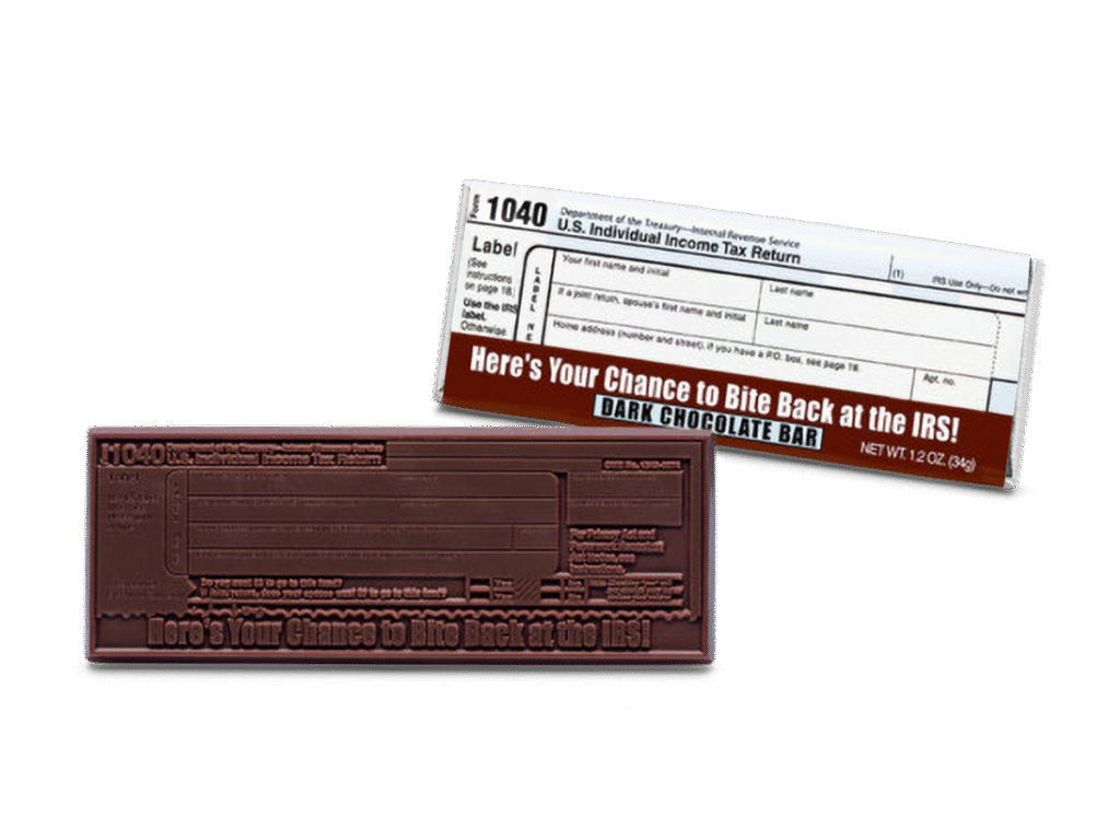 2″x5″ Milk Chocolate Wrapper Bar – IRS 1040 – Case of 50