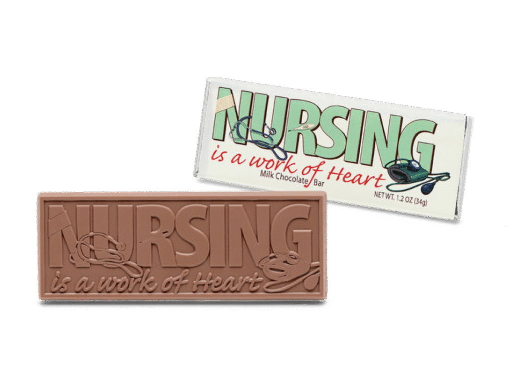 2″x5″ Milk Chocolate Wrapper Bar – Nursing is a work of heart. – Case of 50