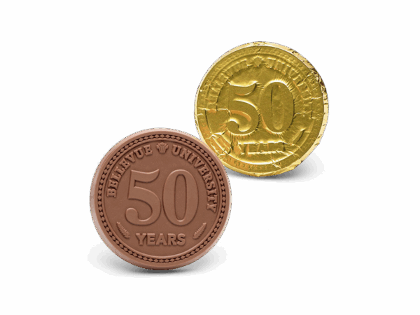 Celebrate success in the sweetest way with our custom chocolate medal with ribbon. Each 2.75″ medallion, available in milk, dark or white chocolate, is engraved with your logo or design and wrapped in brilliant gold foil. It’s a delicious keepsake that turns any event, giveaway, or recognition moment into a win.